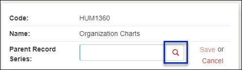 To view an example of editing the Name field within the record series detail view, hover your mouse over the image.