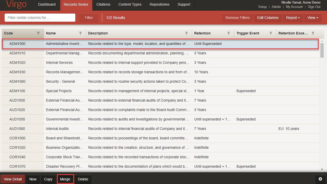 You will learn how to edit, add, copy, merge, delete, and inactivate record series in your retention schedule.