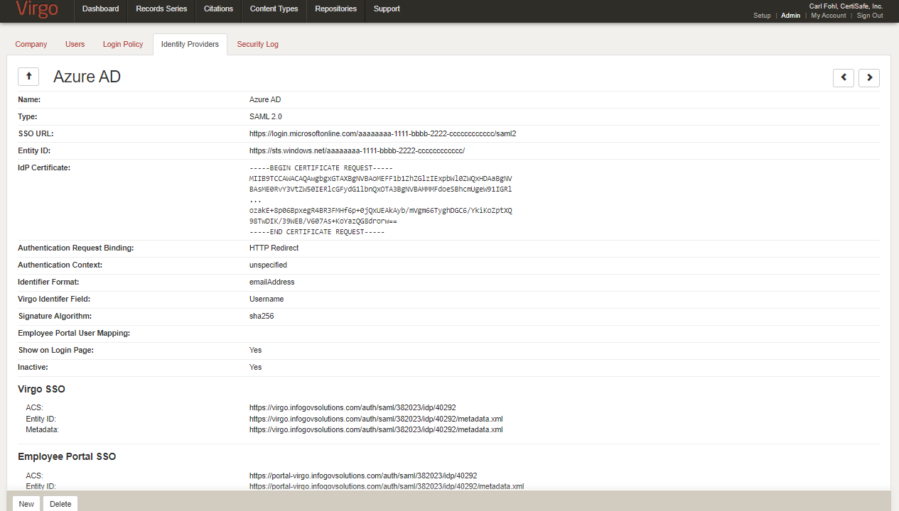 https://portal-virgo.infogovsolutions.com/auth/saml/XXXXXX/idp/XXXXX?RelayState=https%3A%2f%2fportal-virgo.infogovsolutions.com%2fportal%2fadminRetentionSearch%2fcontentTypesSearchForm%3F_embed%3Dfalse |