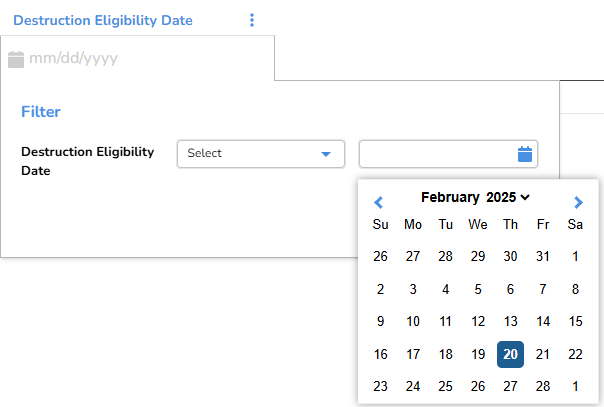 | Equals | Ensures items in the column match the specified date precisely. For example, in Service Date, if you enter or select 02/02/2020 (February 2, 2020), the column will only display service repairs for 02/02/2020. |